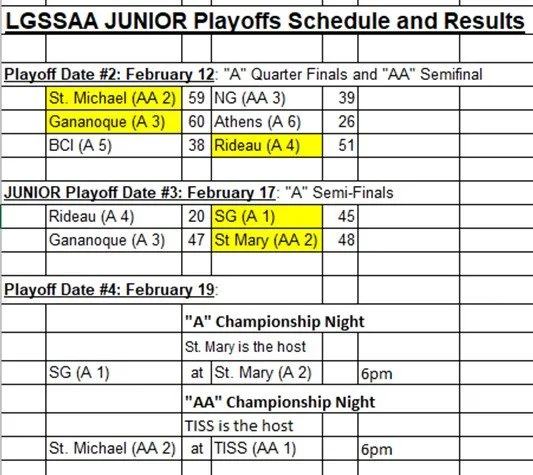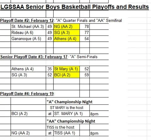 The playoff dates below have been updated due to a Snow Day on Feb 10.