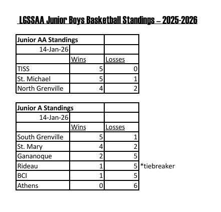 Regular Season Scores for 2025-2026 below: (updated Dec 5/25)